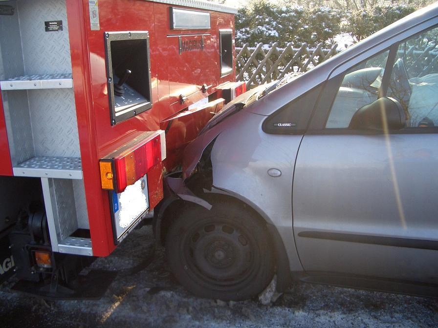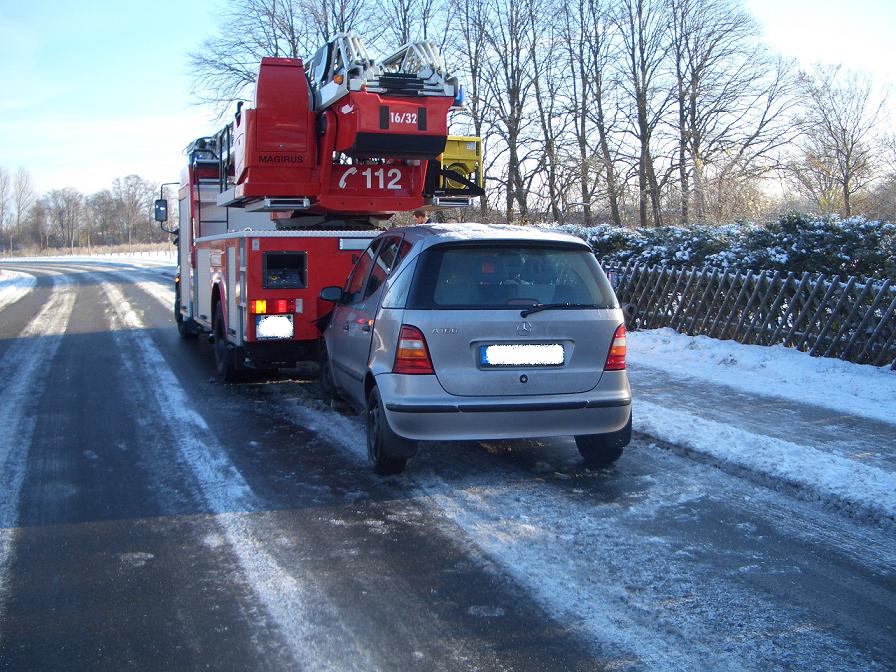 Zwischen Neuschönberg und Schönbergerstrand kam es auf der Strandstraße zu einem Verkehrsunfall mit einem Feuerwehrfahrzeug. Die DLK 23/12 stand in Fahrtrichtung Strand auf der Fahrbahn mit Warnblinklicht um eine Gefahrenstelle zu sichern. Ein Pkw kam aus Richtung Neuschönberg und fuhr auf die Drehleiter auf. Bei dem Pkw sind Betriebsstoffe ausgelaufen. Durch die Feuerwehr wurde die Ölspur abgestreut. Die Polizei Laboe hat die Unfallstelle gesichert und den Unfall aufgenommen.