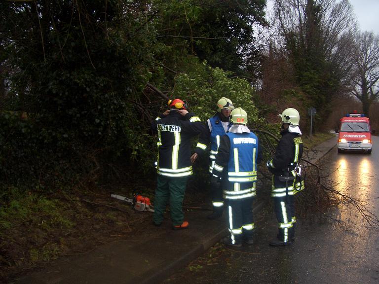 Im Stakendorfer Tor wurde ein Baum über der Fahrbahn gemeldet. Am Einsatzort stellten wir fest, dass eine Pappel abgeknickt war und einige Äste auf der Fahrbahn lagen. Mit der Motorsäge vom LF 8/S wurden die abgeknickten Äste abgesägt und die Fahrbahn geräumt.