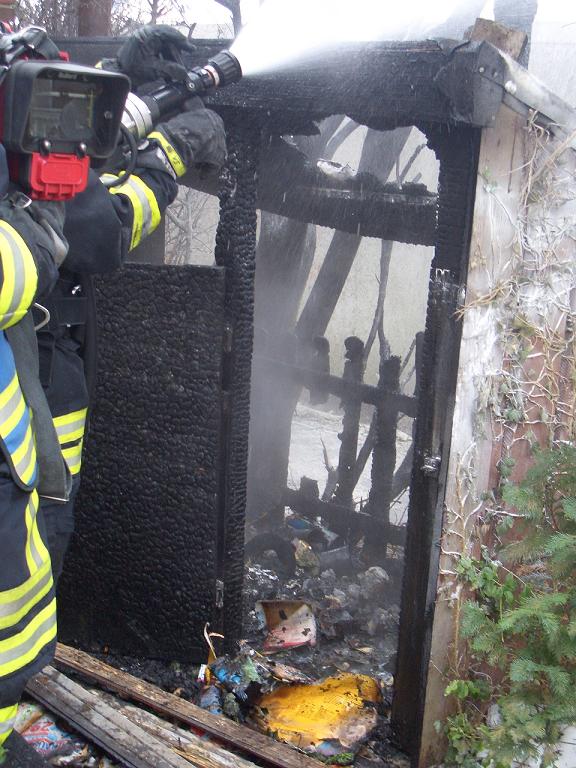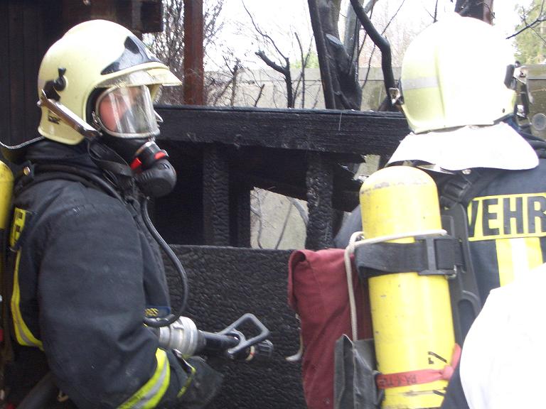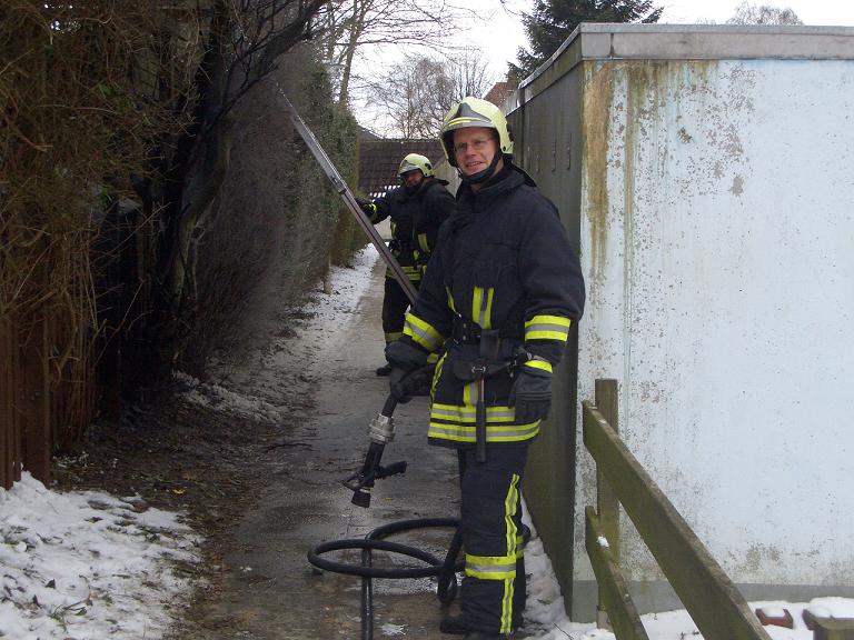 Wir wurden zu einem Feuer in die Schillerstraße alarmiert. Es sollte ein Nebengebäude brennen und das Feuer drohte auf das Wohnhaus überzugreifen. Am Einsatzort hatten Nachbarn bereits begonnen das Feuer mit Feuerlöschern zu bekämpfen. Vom TLF 16/25 wurde sofort ein Trupp unter Atemschutz zur Brandbekämpfung eingesetzt. Weiterhin wurde vom LF 16/12 ein weiteres C-Rohr zur Brandbekämpfung vorgenommen. Durch den schnellen Löscherfolg konnte ein übergreifen auf das Wohnhaus verhindert werden. Ein Unterstand für Mülltonnen ist komplett abgebrannt. Durch die Wärmestrahlung mussten auch einige angebrannte Windbretter vom Anbau entfernt werden. Nachdem die Brandstelle mit der Wärmebildkamera nochmals überprüft wurde, konnte die Einsatzstelle um 14.21 Uhr an die Eigentümer übergeben werden.